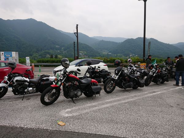 高速に乗って、途中でかめさんのハーレーにトラブル発生。